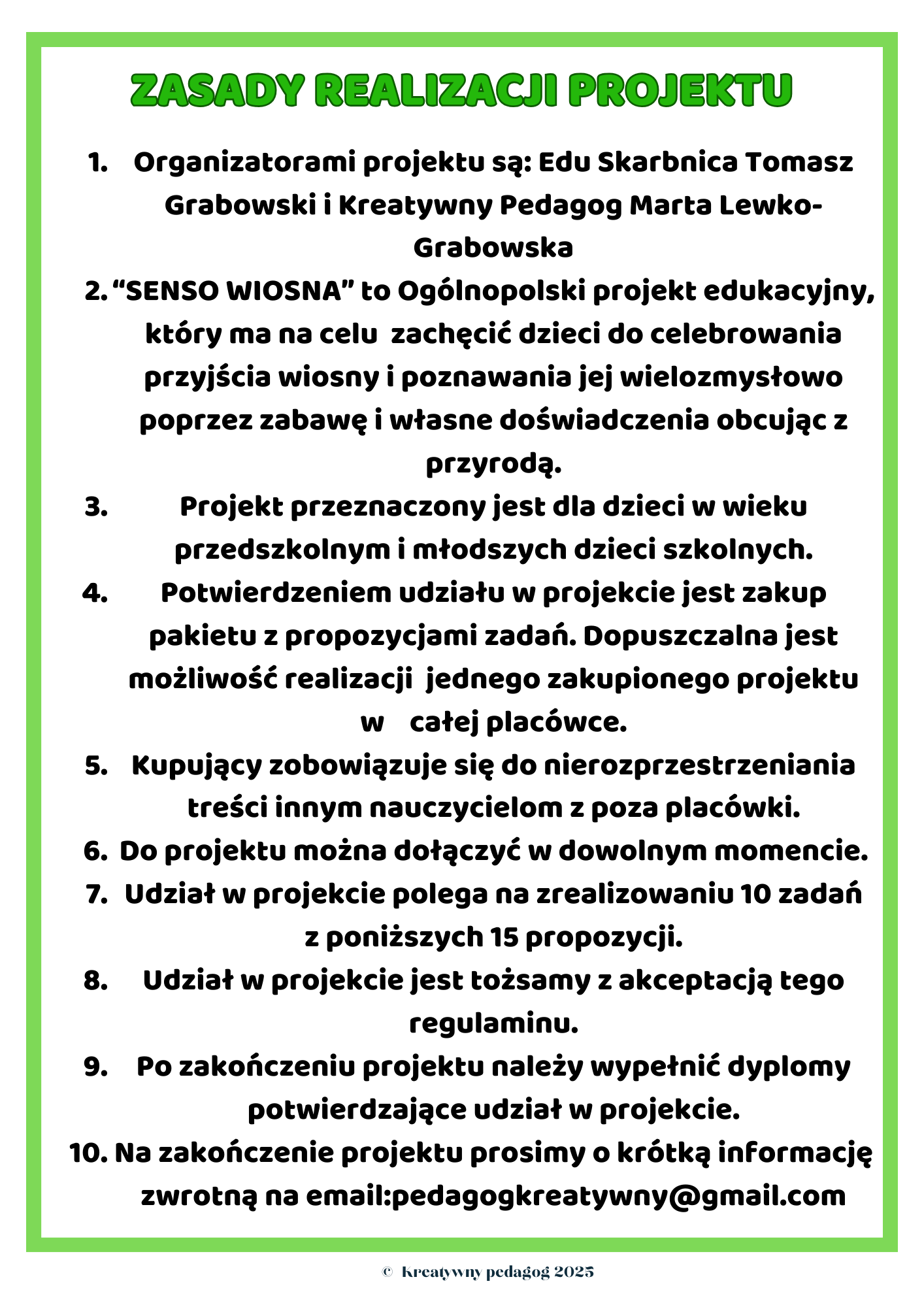 – zasady realizacji projektu.